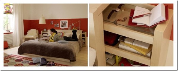 Прикроватный шкафчик очень полезный предмет мебели, необходимость в каждой спальне. А если ваша спальня по размерам приближается и к микро и туда, ну никак не поставить этот полезный предмет, то шкафчик, встроенный в изголовье, и есть решение проблемы.