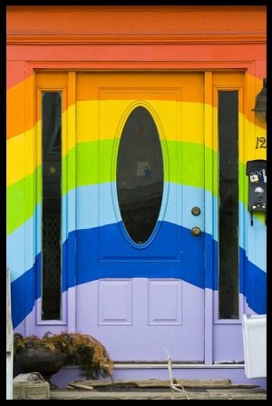 Долой серые и скучные входные двери. Вы ведь не хотите, чтобы гости заходили к вам со скучными лицами? Раскрасьте парадный вход радугой и хорошее настроение станет поселится у вас.