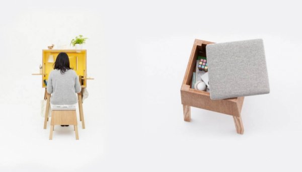 Конструкция многофункционального стола имеет различные окошки, для изменения естественного освещения, а в стул можно спрятать маленькие предметы. Вы можете создать целый мир в этом кубе и менять его хоть каждый день. Добавить освещение, вырастить на крыше сад, заселить жителе. Но также за ним можно легко читать или работать за ноутбуком.